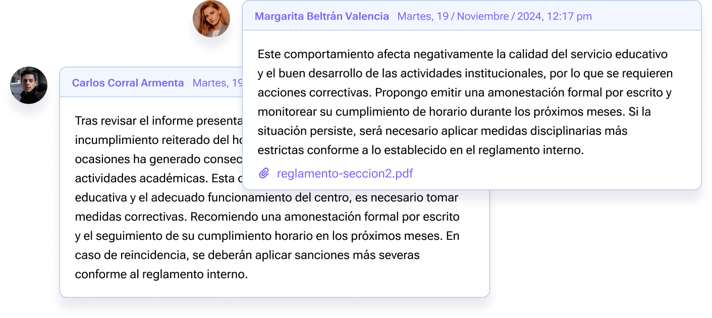 Los administradores pueden agregar comentarios a los informes, permitiendo un mejor análisis y seguimiento de cada caso. Mantén un registro claro de observaciones y toma decisiones con mayor información.
